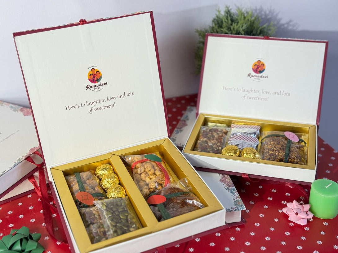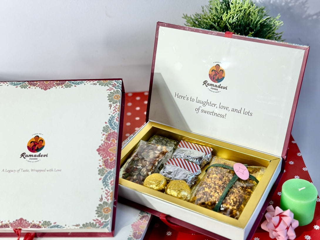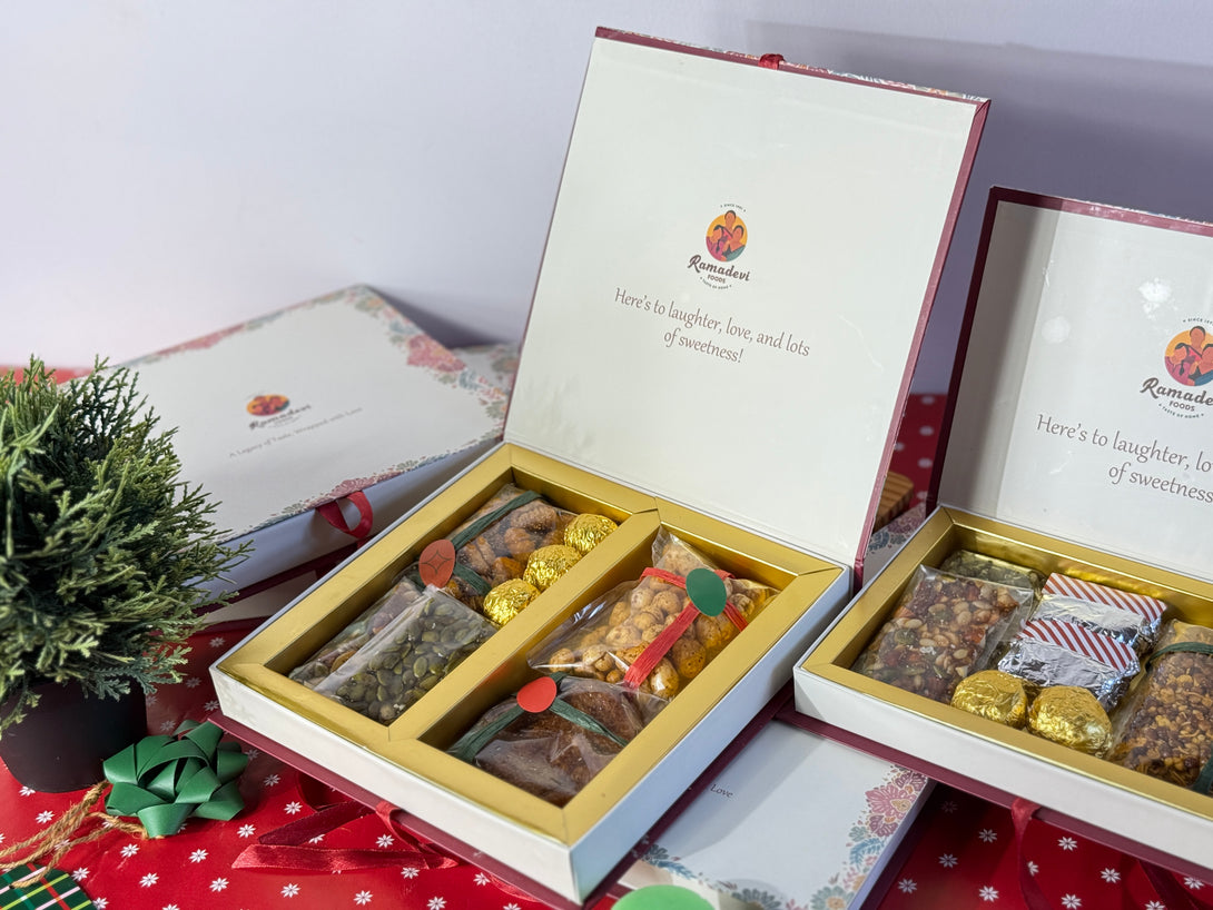 Celebrate the joy of Christmas with a handcrafted gift box filled with authentic South Indian flavours. Thoughtfully curated with premium sweets, crunchy snacks, and festive treats, this box is designed to spread warmth, sweetness, and togetherness.